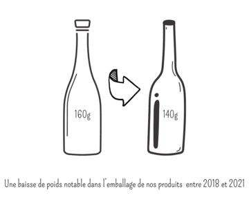 • 2021 Bouteille 1L PET : passage 32g à 30g (économie de 3t / an)