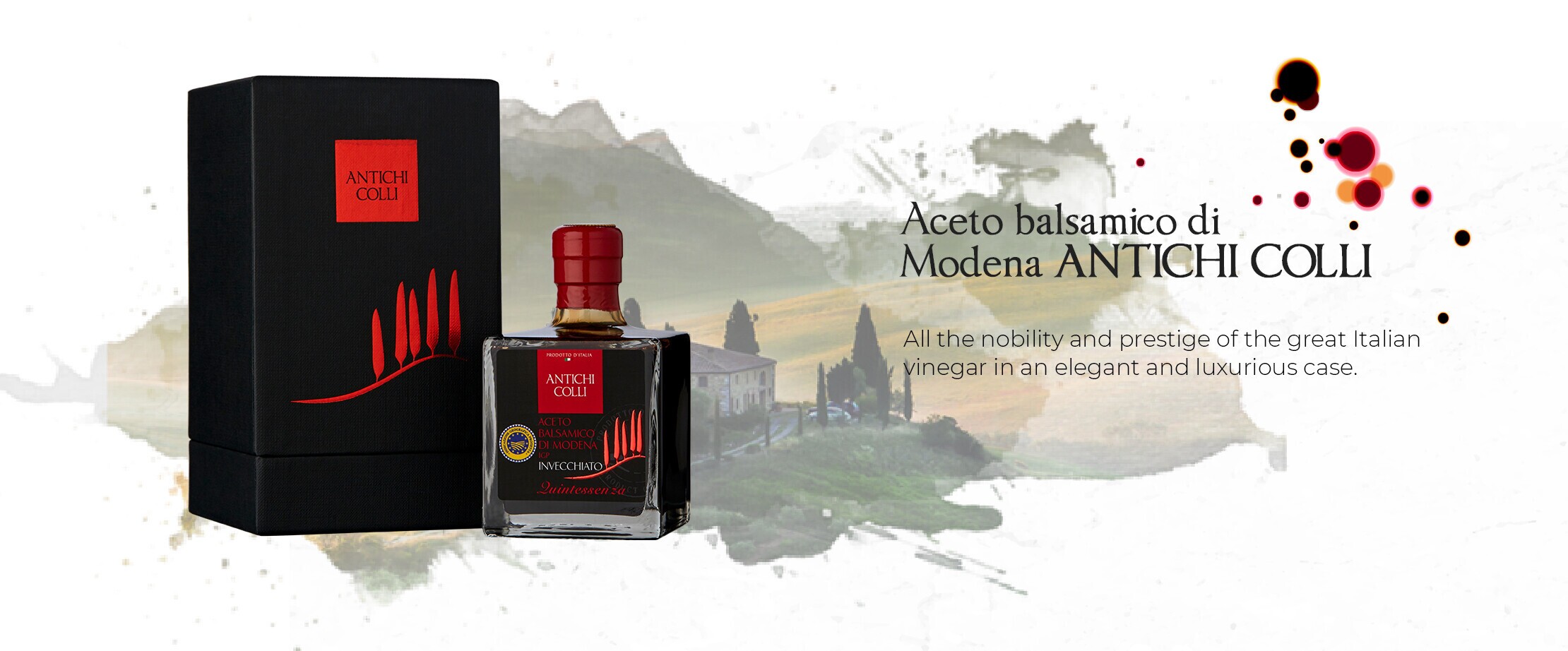 Antichi Colli transmet aux consommateurs une part d’imaginaire au travers d’un goût évocateur de la cuisine italienne. Véritable fleuron de cet art de vivre ensoleillé, Antichi Colli propose une richesse aromatique, harmonieuse à l’équilibre classique et parfait. Le vinaigre balsamique de Modène Antichi Colli réaffirme l’exception des goûts qu’il peut offrir et surtout la richesse de ses modes d’utilisation.